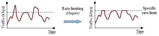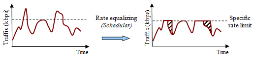 - 超出指定限制流量加入到队列中–rate equalizing (计划发送) ,当queue-size=unlimited(无限制),队列中的数据按照比例均衡发送。