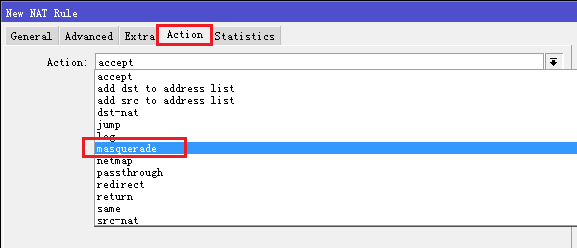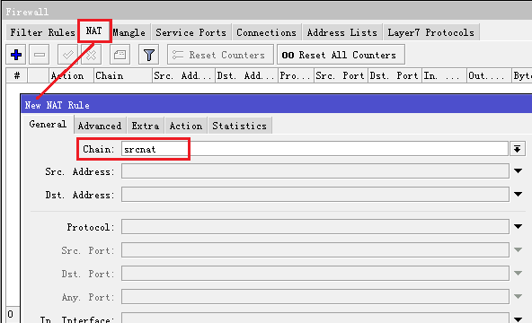 在NAT里添加新的规则,在chain里选择srcnat链表:
