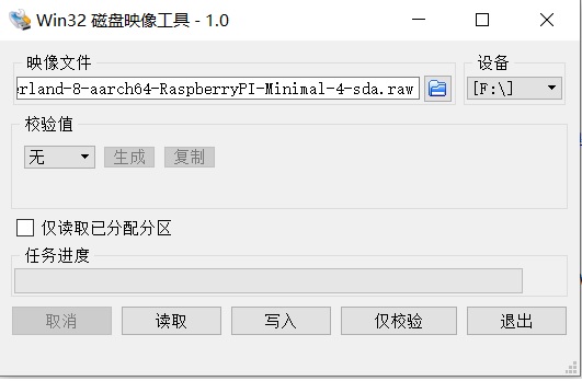 解压镜像文件后,使用Win32磁盘映像工具,将镜像写入SD卡: