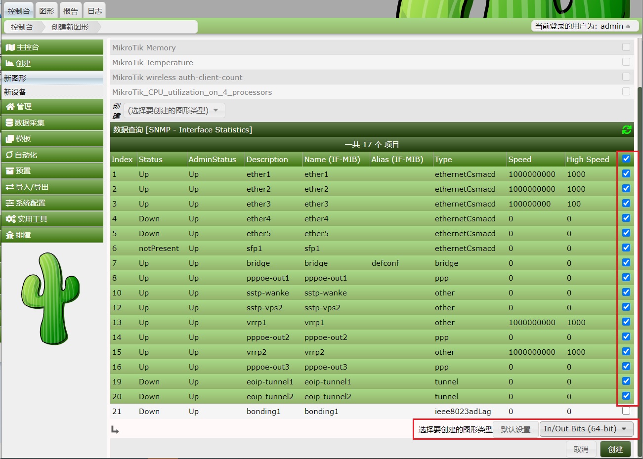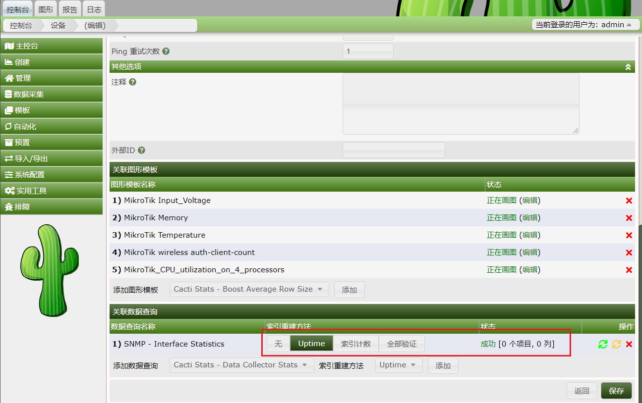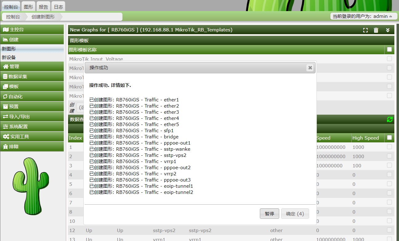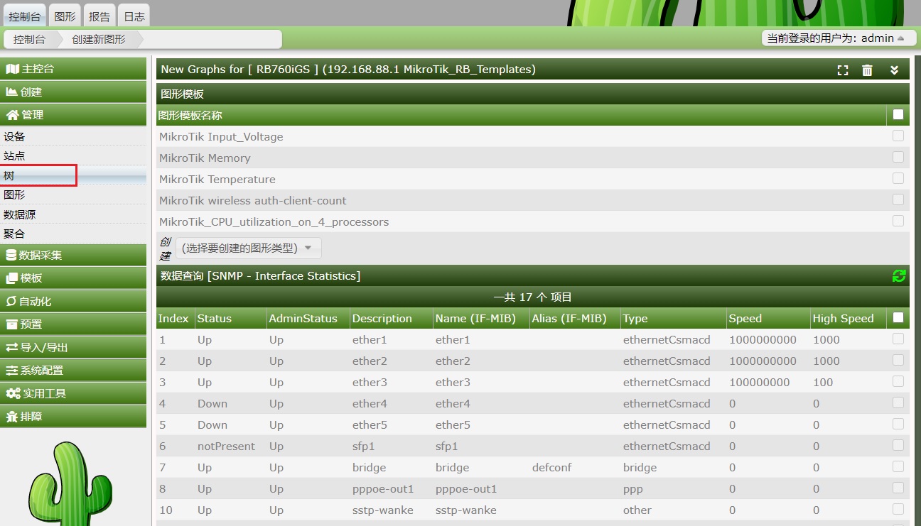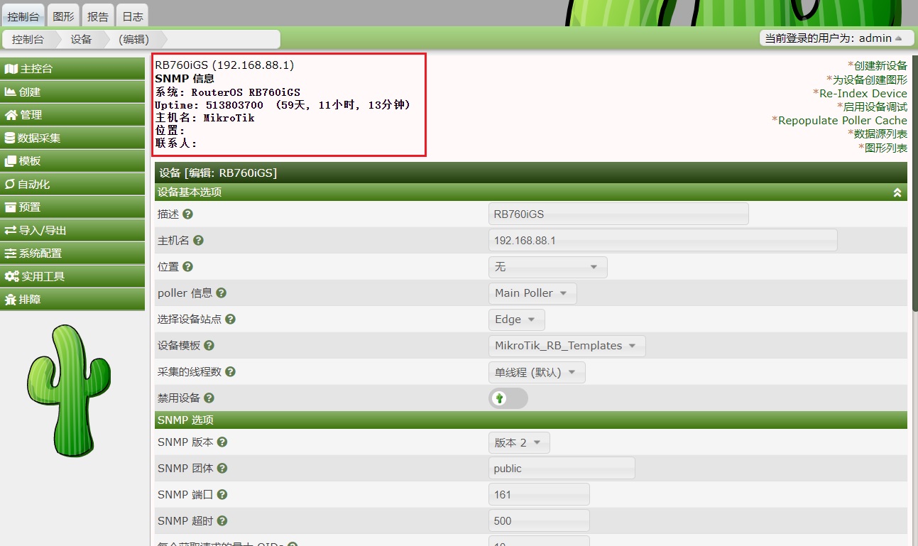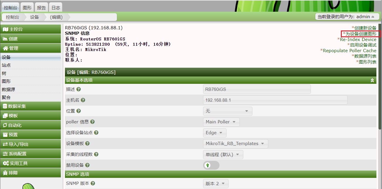 Cacti 1.2.16搭建完成后,如何添加一台设备的流量图,这里我通过添加一台RB760iGS为例