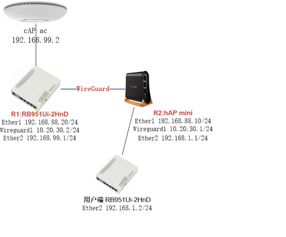 - R1:RB951Ui-2HnD和R2: hAP mini 作为wireguard的互联(RouterOS v7.1beta6)