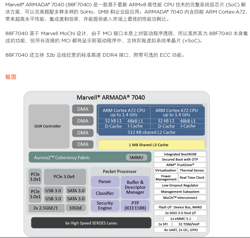 这个设计大家一定要注意,交换芯片到CPU总线只有10Gbps,但交换芯片端口的总接口吞吐量是10G+2.5G+7*1G=19.5G,明显流量到CPU无法处理完,总线看起有瓶颈,但其实需要考虑到Marvell 88E6393交换芯片的使用环境,用于内网二层数据交换,剩下的三层路由才需要Marvell 88F7040来处理。
