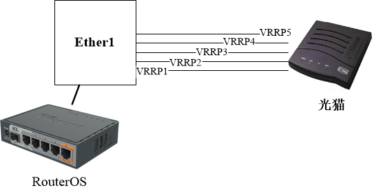 下图,一个光猫能同时5次拨号(仅仅是一个假设,大多只能3次拨号),用来演示如何进行VRRP的拨号,这样偷个懒把多光猫拨号配置实例一起讲解了,因为配置是一样的。
