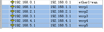 之后的配置以此类推192.168.2.1-192.168.5.1,添加剩下的4个vrrp接口