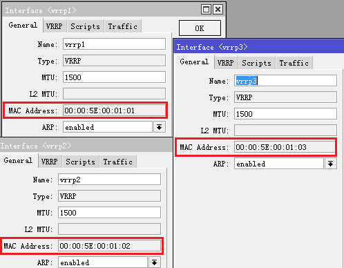 我们来对比下VRRP接口的MAC地址,都是不同的