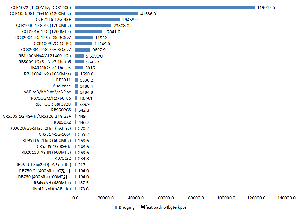 下面图则是近年来,RB、CRS和CCR等产品的对比,注意单位是kpps,每秒转发包