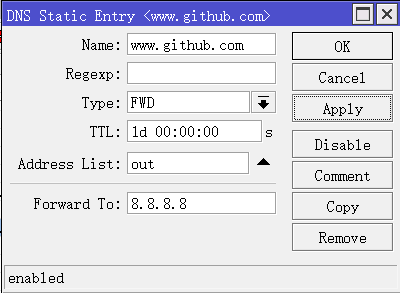 涉及相关域名的IP地址将会被加入到ali地址列表中(/ip firewall address-list可以看到),如何调用这个地址列表,就是管理员自己发挥了。