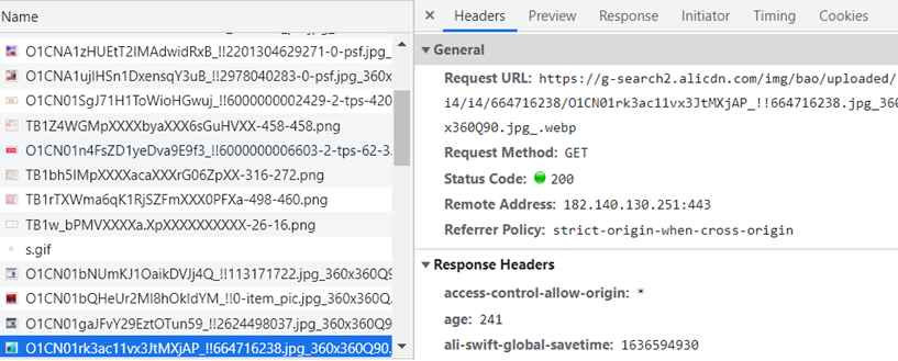 RouterOS的/ip firewall address-list支持填写域名,并自动解析返回IP地址,但仅支持明文域名,无法通过正则表达式去匹配泛域名。一般大型网站,都是由多个二级或者三级域名组成,图片、下载、视频和css都是单独的域名,如某宝网站可以通过浏览器的F12抓取域名,如下图: