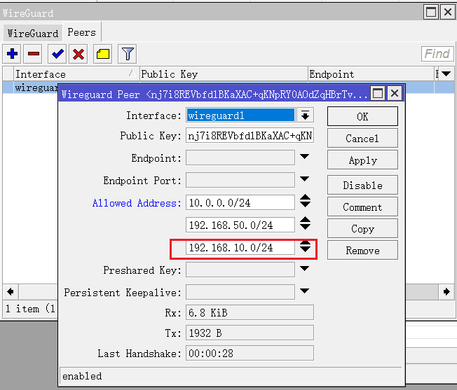 PublicKey = 复制RouterOS publickey