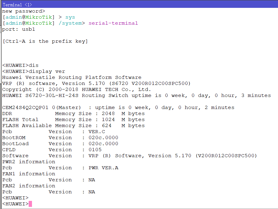 还测试了RB951Ui-2HnD的USB,通过USB转rs232连接交换机,也正常连接。使用的USB转rs232品牌是Z-TEK。