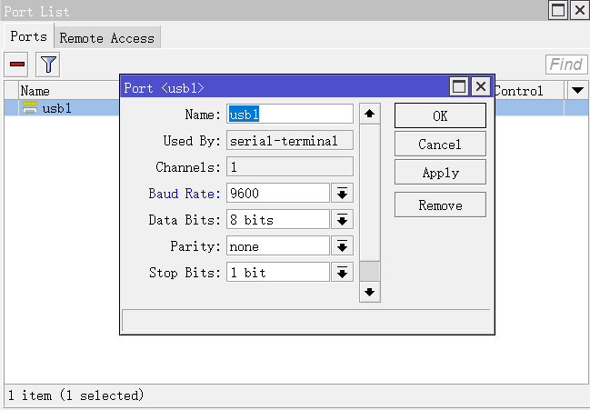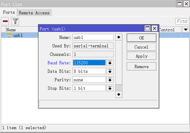 注意MikroTik设备的串口速率是115200,有别与其他网络设备,设置如下: