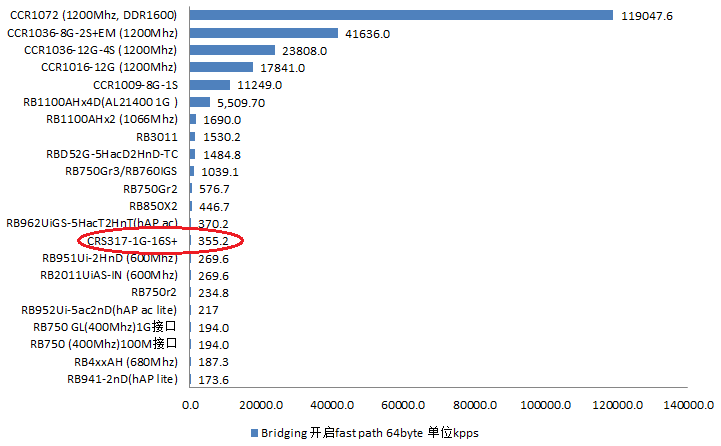 如果根据官方提供的CRS317-1G-16S+RM交换机吞吐量(包转发率)是239Mpps,参照下华为S5720-32X-EI-AC交换机是222Mpps(24个1Gb以太网口,4个1Gb SFP口,4个10Gb SFP+口,2个40Gb QSFP+,单电源)