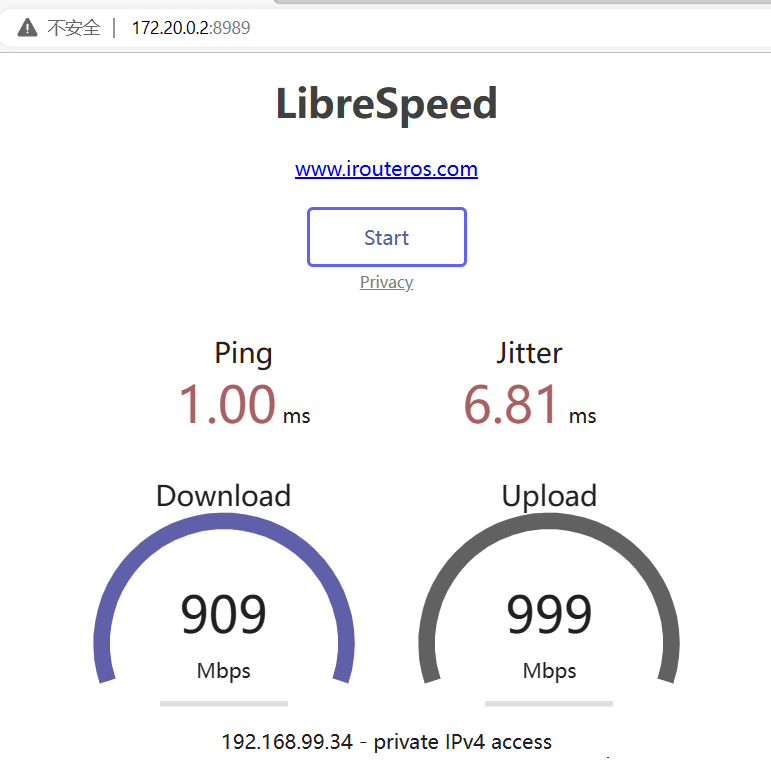 通过RouterOS的Container容器安装Librespeed,部署在RouterOS上,搭建自家带宽测试平台。用于外网和内网的带宽测试,验证带宽是否达到要求。