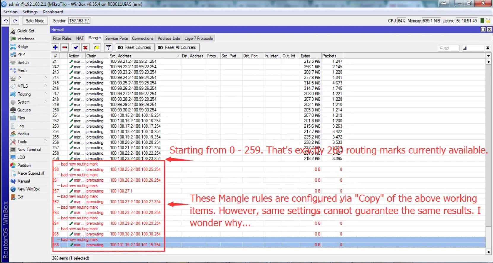 也就是多线的策略路由标记无法超过251条,超过后无法使用