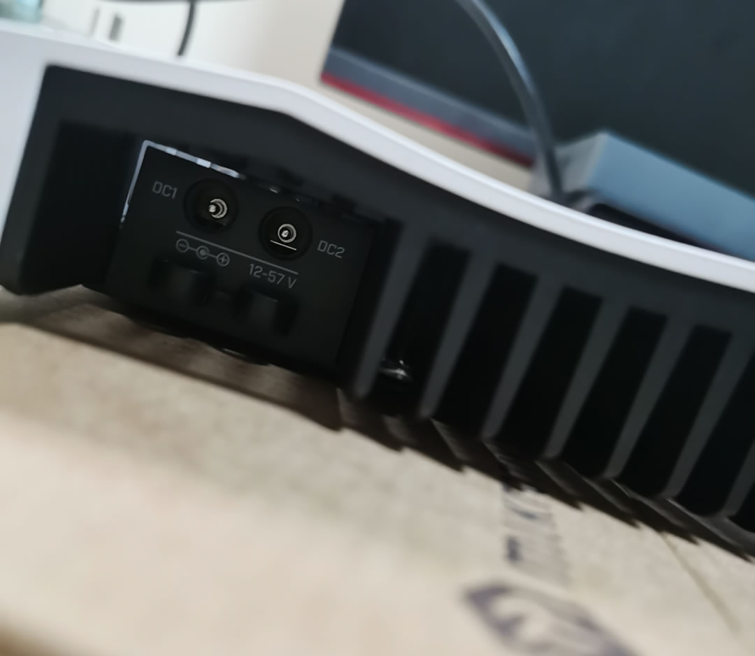一共3个电源输入,2个DC插口,一个凤凰端子输入