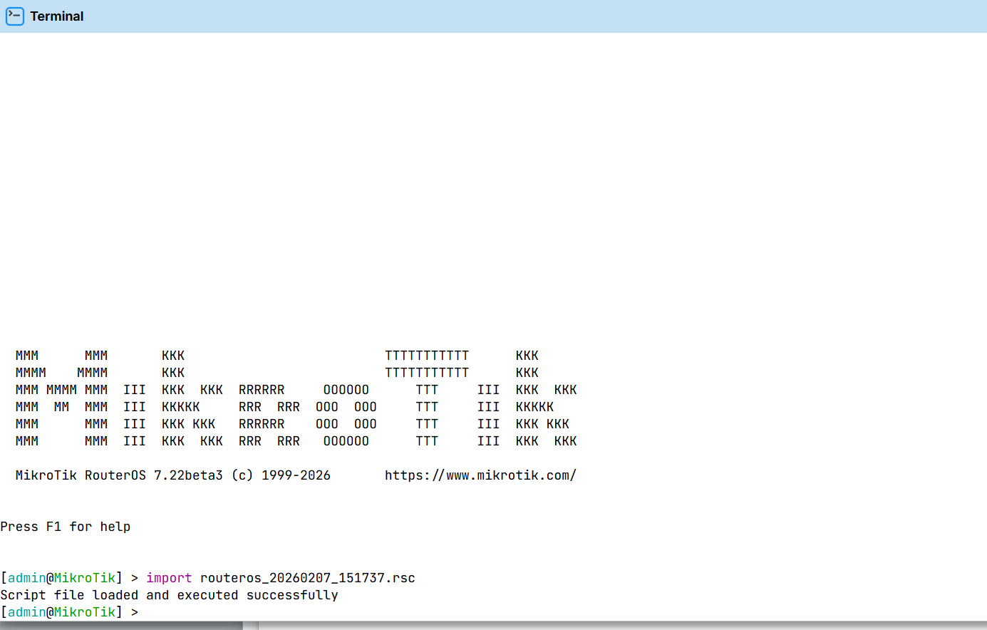 [admin@MikroTik] > import routeros_20260207_151737.rsc