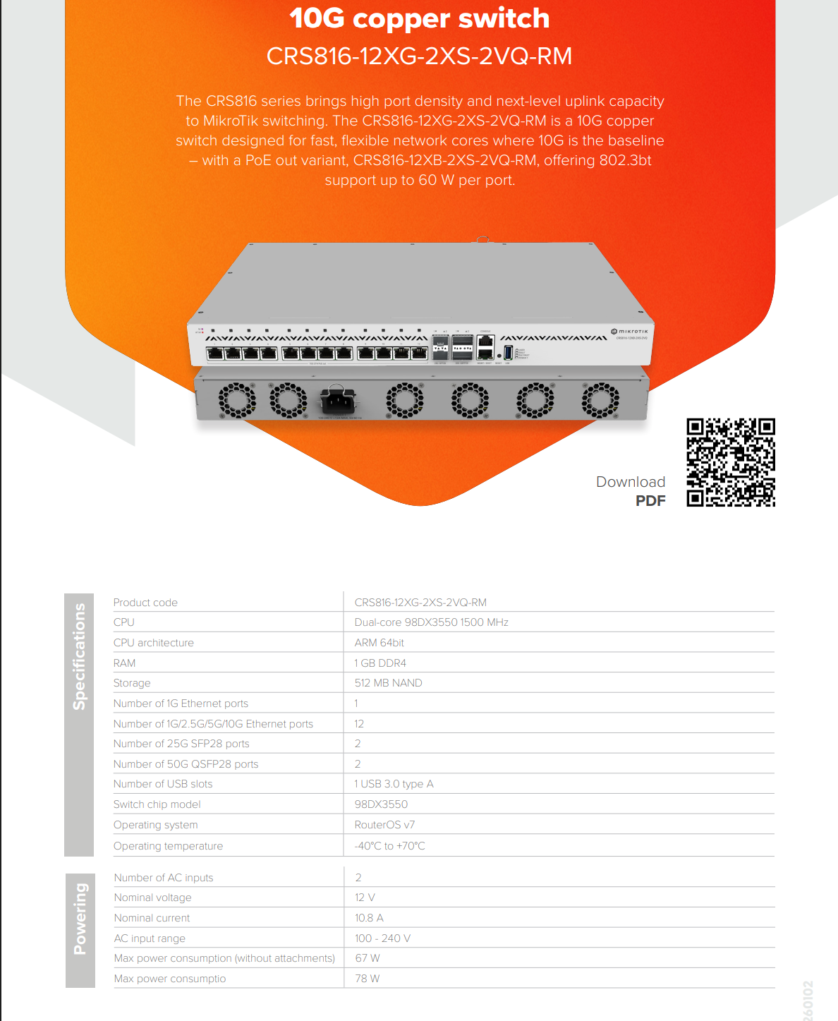 | 产品代码 | CRS816-12XG-2XS-2VQ-RM |