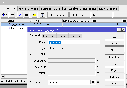 之前有这样一个需求,客户通过windows电脑使用PPTP连接进入RouterOS,这时该PPTP账号对应一个运营商PPPoE拨号,并自动启动连接,这个PPPoE拨号获取一个公网IP上网,该账号的PPTP默认走这个PPPoE拨号上网,当PPTP账号断开后,对应的PPPoE拨号也同样断开。其实目的是当需要重新获取另外一个公网IP时,再一次连接,就这样周而复始的获取不同的公网IP,干什么用你们自己猜。所以为此写一个这样的应用和脚本,实现PPTP连接和PPPoE拨号联动