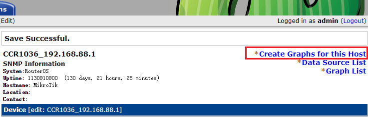 添加成功后,会有如下提示,并选择Create Graphs for this Host,创建主机的监控图
