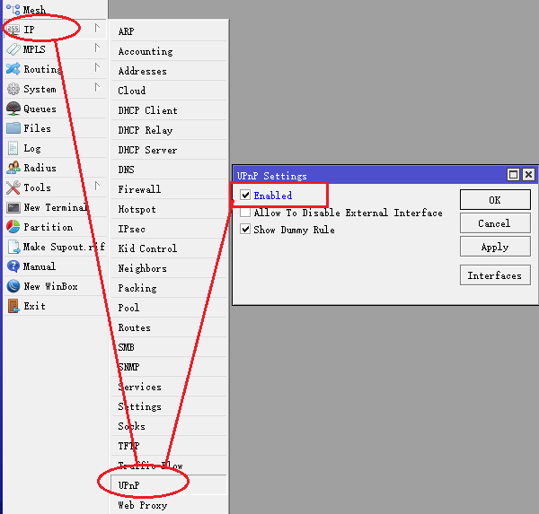 [admin@MikroTik] ip upnp> set enable=yes