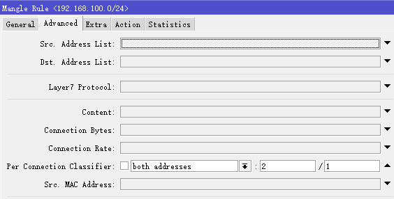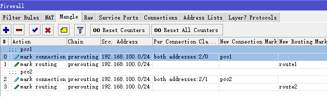 src-address=192.168.100.0/24 new-connection-mark=pcc2 passthrough=yes \