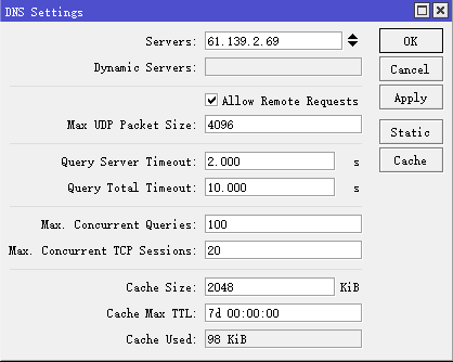 在ip dns中配置DNS为:61.139.2.69,并启用选择allow-remote-requests,启用dns本地解析。