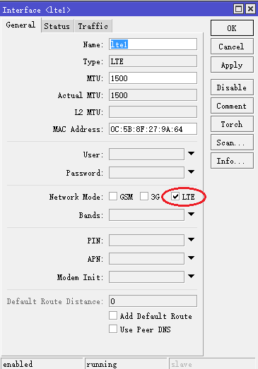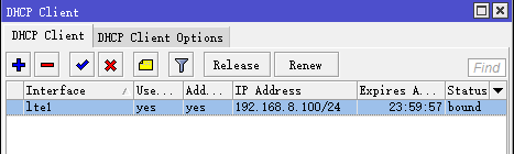 添加完成后,lte1接口自动获取到IP地址,状态如下: