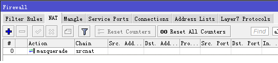 在确保内网IP地址配置完成后,进入ip firewall nat创建masquerade的nat规则,确保内网IP地址上网