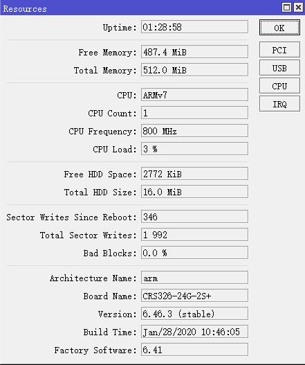 CRS326-24G-2S+当前使用的是RouterOS系统,他还有另外一套SWOS系统,针对二层交换机开发的系统,简化很多配置,但个人不喜欢用SWOS,原因主要是不习惯、功能太少,和RouterOS对比缺乏更多的沉淀(MikroTik重心还是在RouterOS系统)。虽然初学者在操作和使用上会很麻烦,但建议还是用RouterOS系统。