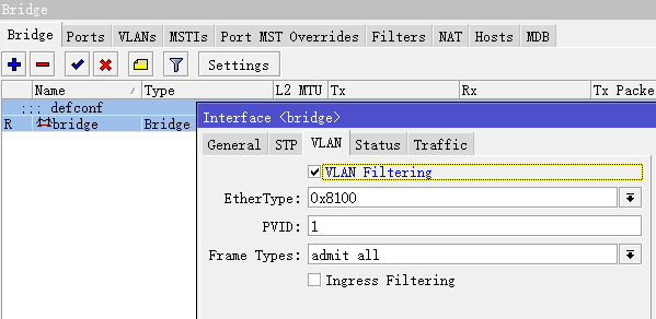 MikroTik的操作方式和华为、思科不太一样,RouterOS提供了CLI和图像操作,但并不是傻瓜式的,配置参数也比较专业,因此如果你有华为和思科的基础,还是能够理解,但配置二层时,是基于Bridge桥接,RouterOS的每个接口都是三层口,因此要把他们加入到Bridge中,才会变为二层接口,类似于华为交换机的 portswitch 命令。接口的二层管理都在Bridge port下完成,而不是华为思科那样进入每个接口进行配置。