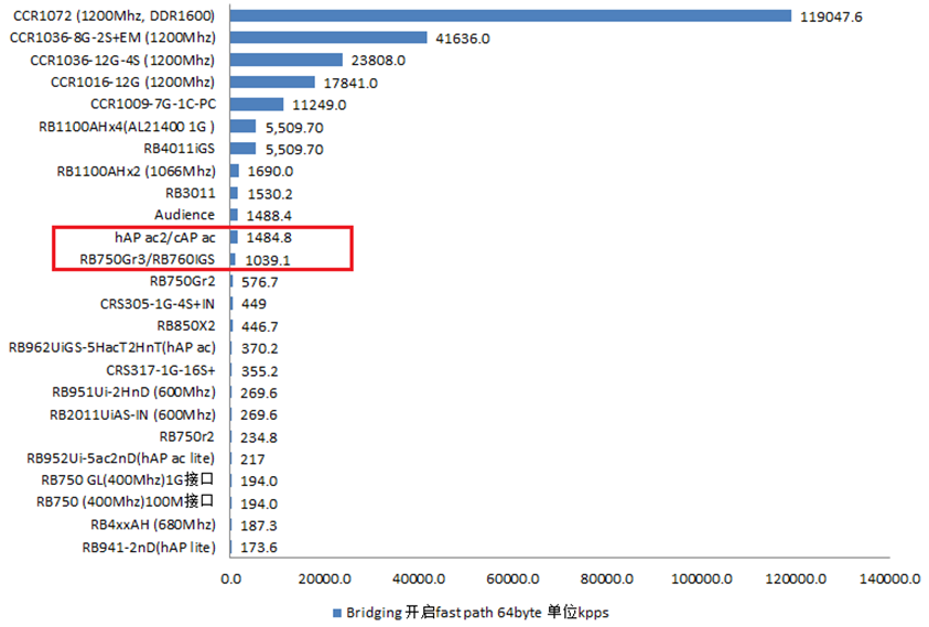 三款路由器,都支持Bridge下的hw-offloading,通过交换芯片达到二层流量线速转发(RB750Gr3在v7.1rc5支持所有功能的L2-HW-offloading,hAP ac2和cAP ac暂不支持VLAN、IGMP-snooping和Bonding的交换芯片处理)。
